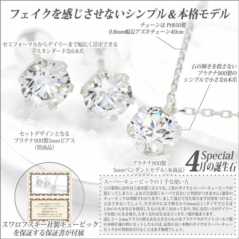プラチナ ネックレス 一粒 ジルコニア スワロフスキー レディース 5mm ビキニスタイル ペンダントトップ ジュエリー 金属アレルギーに優しい スーパーキュービックジルコニア 4月 誕生石 ハート&アロー専用スコープ付 あす楽対応 シンプ fourm クリスマス Xmas Christmasメ